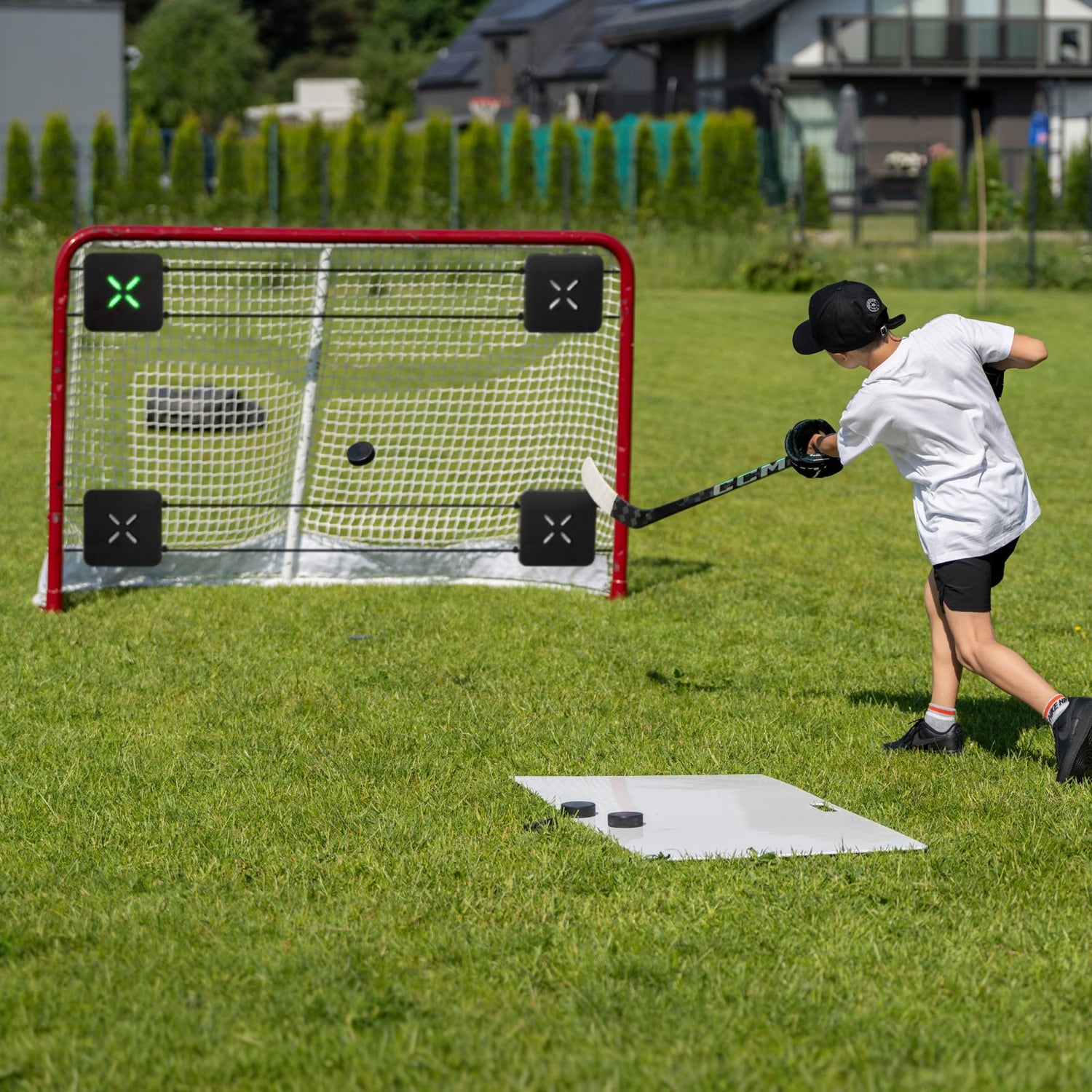 With the help of the smart app, you can take your shooting practice to the next level. Attach the four Shooting Targets to a standard hockey goal, connect via the XDT Training App, and train your shot power, accuracy, and reaction speed in a completely new way.